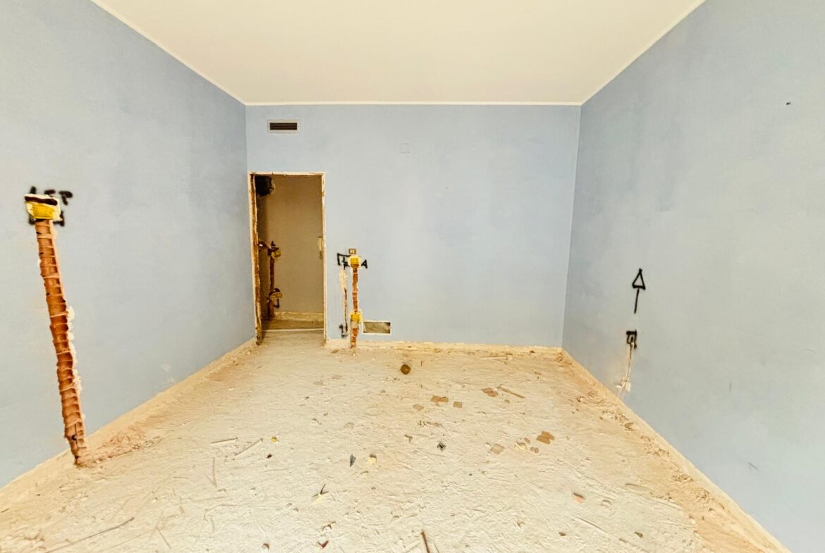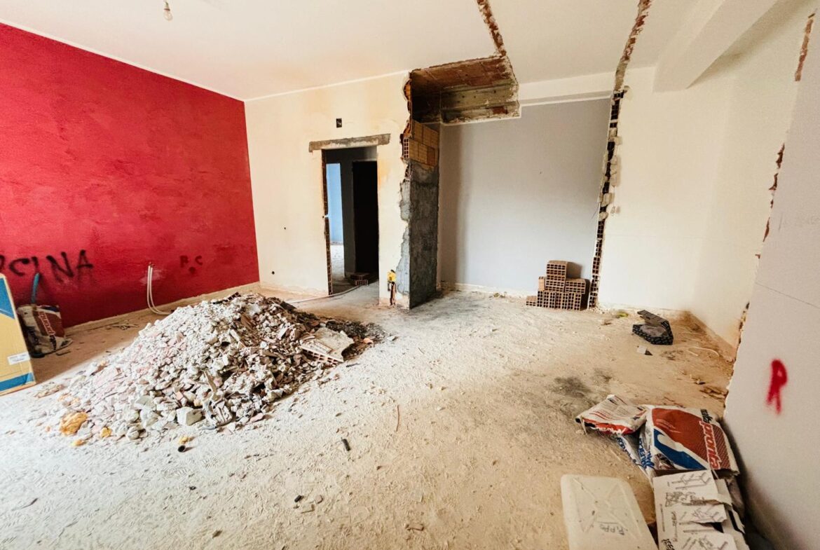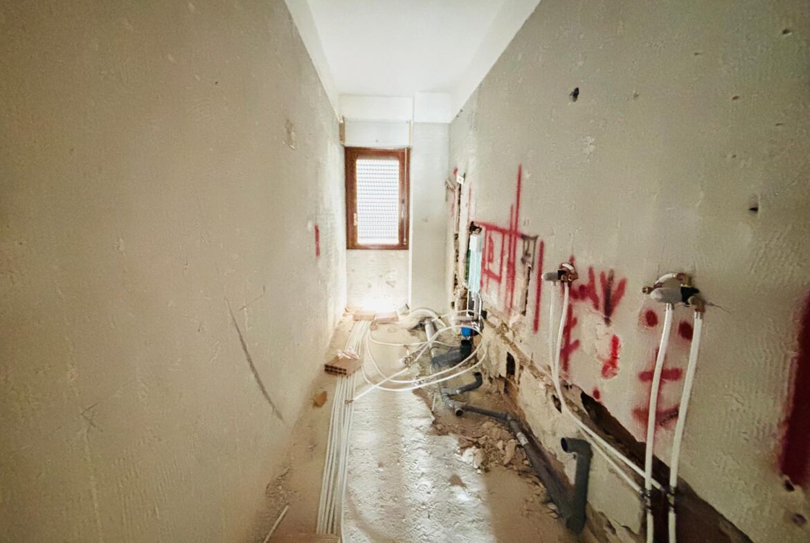 L’immobile – ubicato al 5° ed ultimo piano di una palazzina dotata di ascensore – è attualmente oggetto di lavori di ristrutturazione totale. Al suo interno è cosi modulato: ingresso su cucina salone, bagno, camera padronale con balcone, comoda lavanderia e cameretta, anche quest’ultima con affaccio su balcone. La casa è resa molto luminosa e ben arieggiata dai due balconi con affacci su due esposizioni.